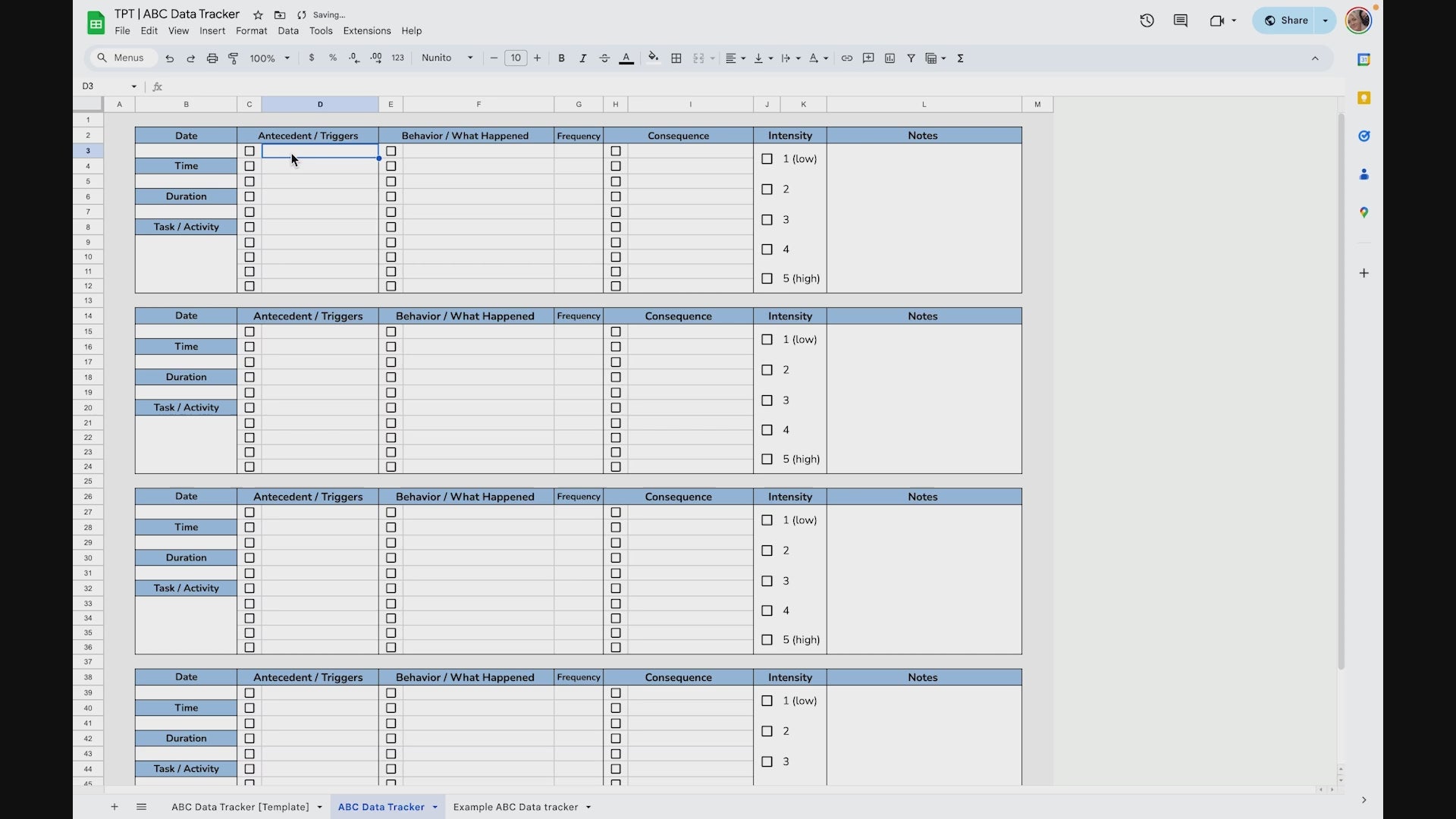 We wont talk about how much I have spent on ABC trackers before I found Sheets that Teach. TikTok led me here, but I am obsessed. Super user friendly, easy to print and have a on a clipboard for when we can't take the ipads with us, but also easy to use for anyone who needs to track behavior!